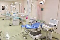 当科は一般的な歯科医院とは異なり、口腔領域に関連する専門的な治療や救急処置を行なっています。そのため、虫歯や入れ歯などの歯科疾患については、地域の歯科医院・歯科診療所で対処していただいています。また、全身麻酔による手術や歯性感染症の消炎治療などの入院治療も可能です。さらに医科との連携により外科手術や放射線療法などの前後の口腔管理や、外科手術後の術後合併症予防・誤嚥性肺炎予防のための口腔ケアも行なっています。