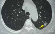 肺を細かく撮影することで、X線写真ではわからない極めて小さな肺がん、心臓や肋骨などの陰に隠れた肺がんなどを発見することができます。肺がんの発見率が胸部X線の約10倍高いとされています。