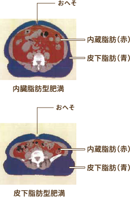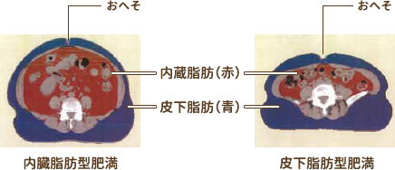 CTで体脂肪面積を測定します。体脂肪は、内蔵脂肪と皮下脂肪に分類されます。内蔵脂肪型肥満を見分けるのに有用です。内臓脂肪の過剰な蓄積は、血糖・中性脂肪・血圧の上昇など、様々な形で血管を損傷し、動脈硬化を引き起こす原因となります。