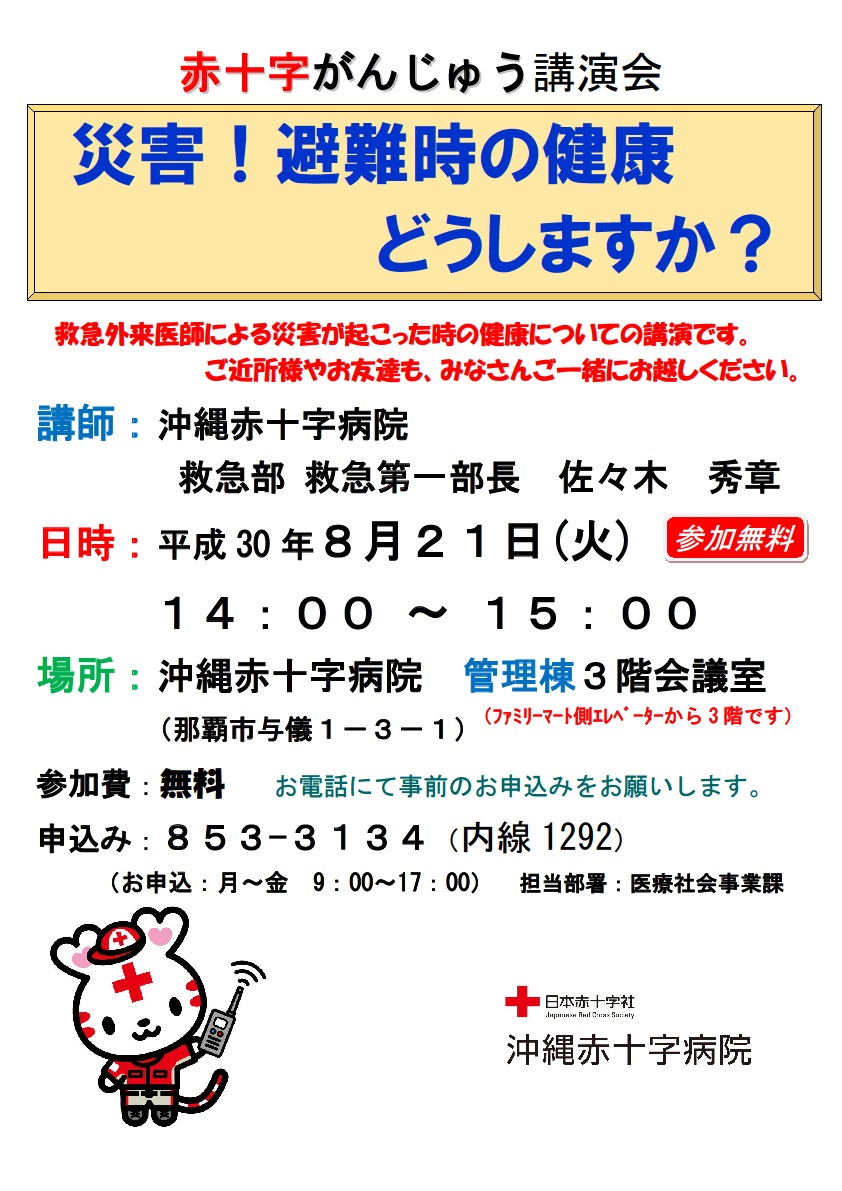 下記のとおり赤十字がんじゅう講演会を開催します。
