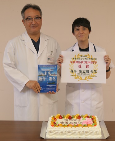 第93回 日本感染症学会西日本地方(令和5年11月9日~11日@富山県)において、当院内科専攻医の有馬聖志朗先生が学術奨励賞(臨床部門)を受賞しました。