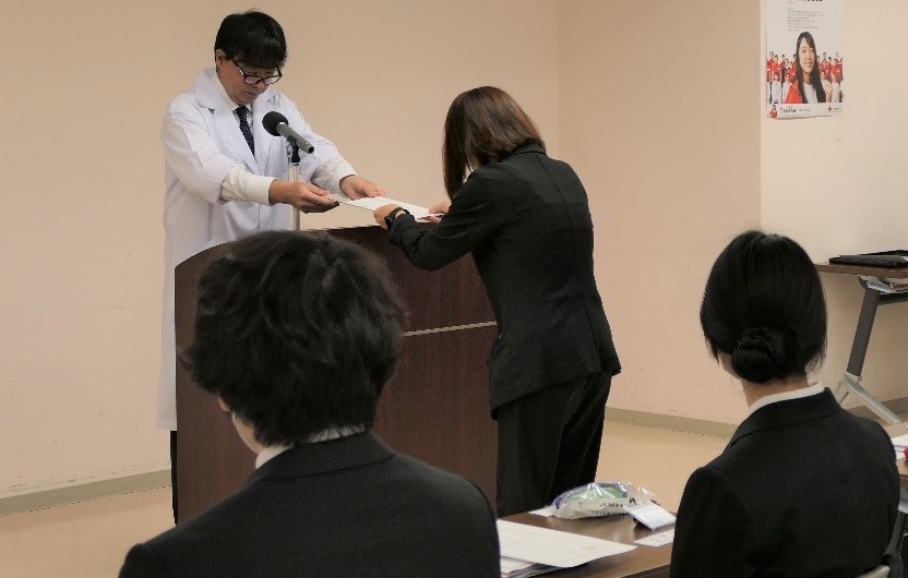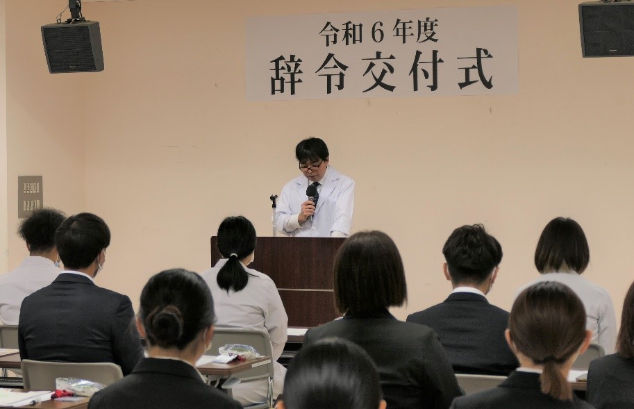 2024年4月1日(月)、今年度新たに採用された職員の辞令交付式が行いました。辞令交付式では、33名の新入職員が1人ずつ辞令を受けました。 宮城副院長からは、「地域の医療を守り、職員の働きやすい病院になるよう環境を整えていきたい。」と話されました。 新入職員はこれから様々な研修を経て、沖縄赤十字病院の医療従事者として勤務いたします。