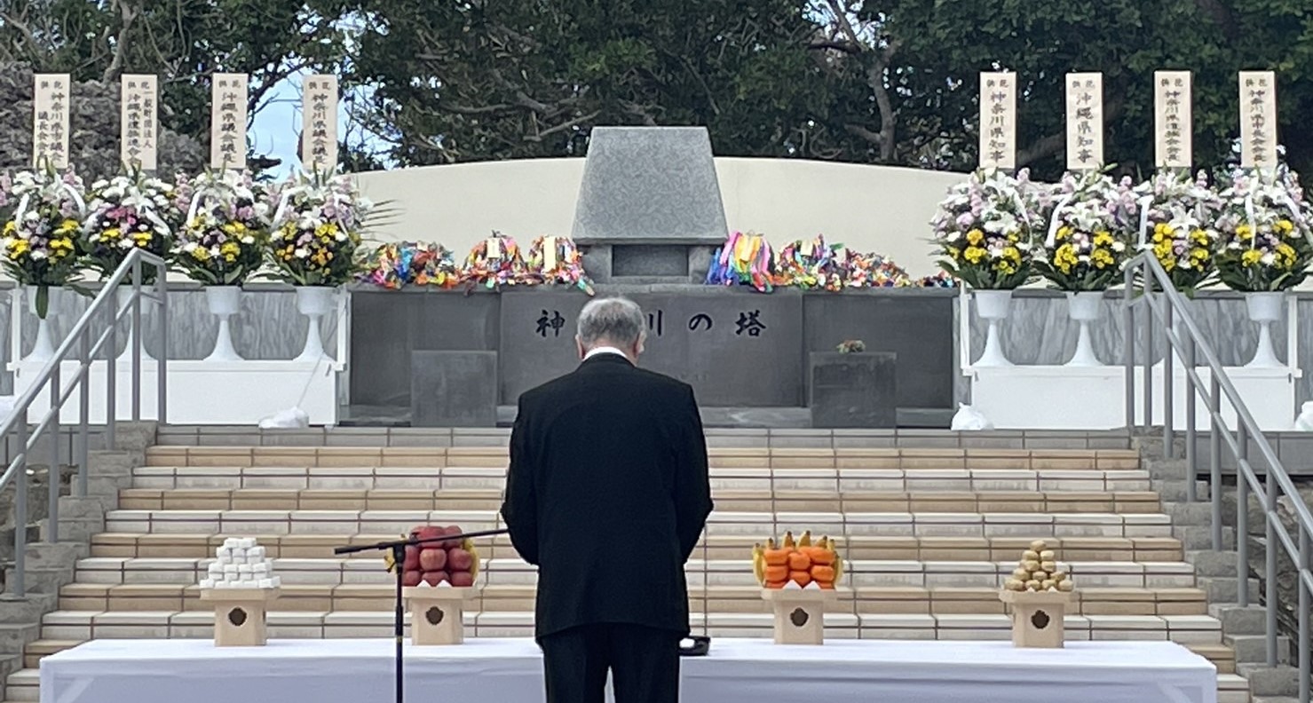 追悼式は、摩文仁の丘にある「神奈川の塔」(昭和40年11月26日建立)で、神奈川県関係戦没者40,680名の冥福を祈り、永遠の平和への決意を新たなものとするために行われています。
