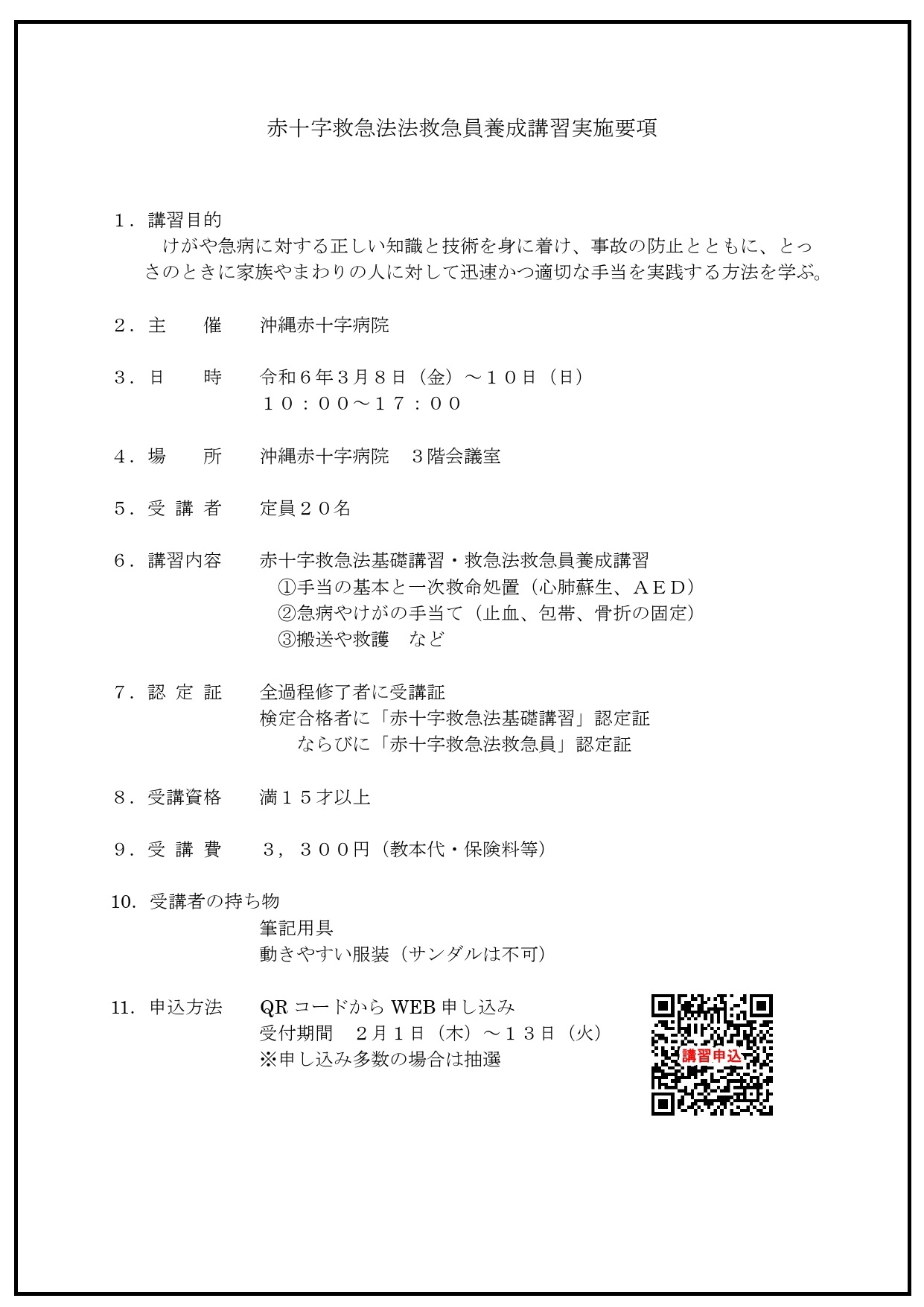 2024年3月8日(金)から全3日間の日程で赤十字救急法救急員養成講座を開催いたします。